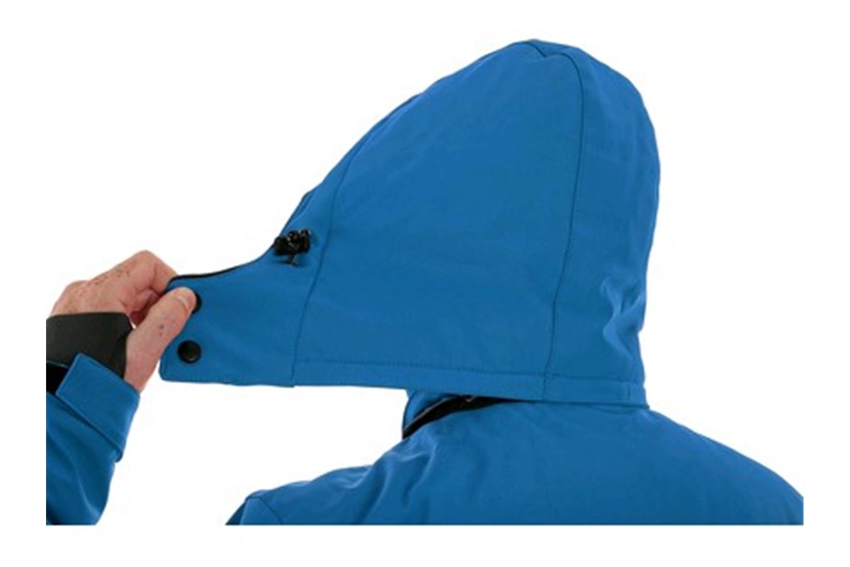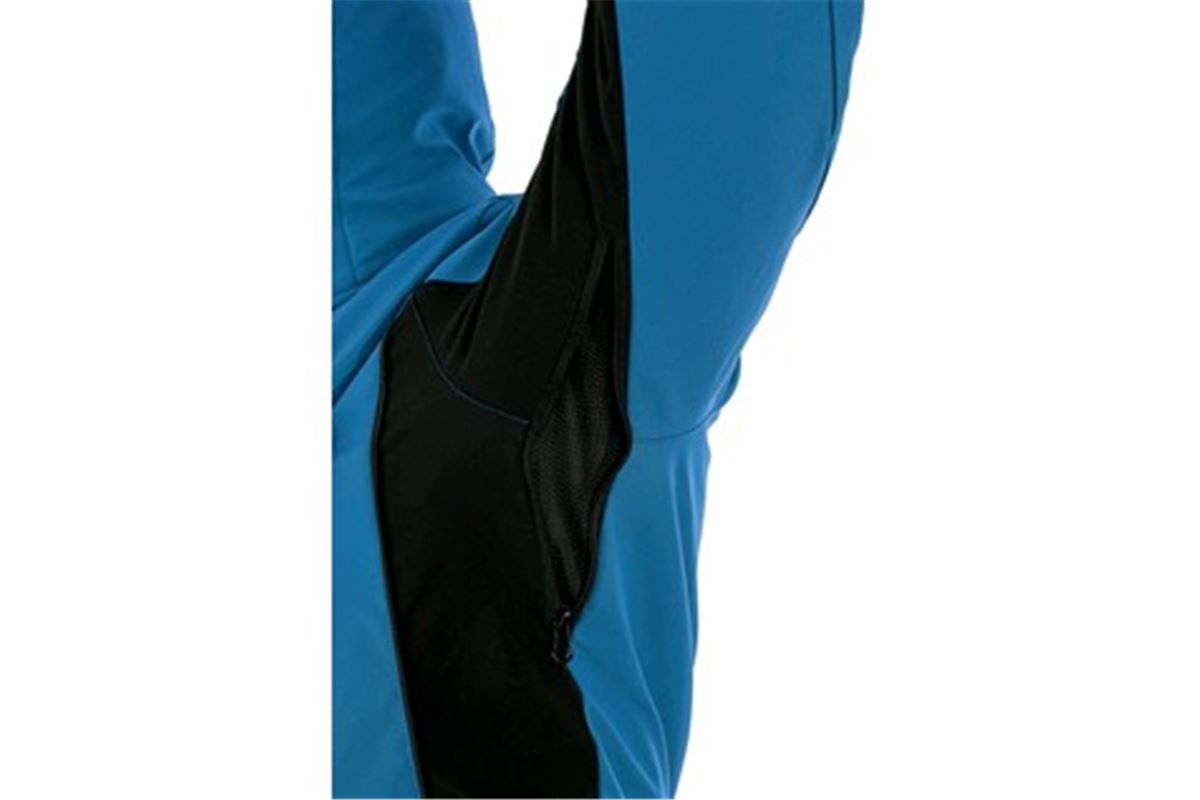 Pánská zateplená softshellová bunda, odolná proti vodě a větru, větrání v podpaží, odepínací kapuce, regulovatelná manžeta na rukávech a pružná manžeta v rukávech, stahování v dolním okraji, černé reflexní výpustky, TPU membrána, odolnost materiálu proti průniku vody 10 000 mm mimo oblast švů, paropropustnost 3 000 g/m2/24 h, podšívka je kombinací materiálů s fleecem, na levém spodním rukávu kapsička na zip, 2 spodní kapsy na zip, vnitřní kapsa.