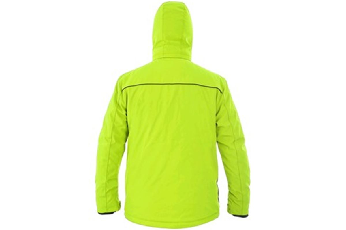 Pánská zateplená softshellová bunda, odolná proti vodě a větru, větrání v podpaží, odepínací kapuce, regulovatelná manžeta na rukávech a pružná manžeta v rukávech, stahování v dolním okraji, černé reflexní výpustky, TPU membrána, odolnost materiálu proti průniku vody 10 000 mm mimo oblast švů, paropropustnost 3 000 g/m2/24 h, podšívka je kombinací materiálů s fleecem, na levém spodním rukávu kapsička na zip, 2 spodní kapsy na zip, vnitřní kapsa.