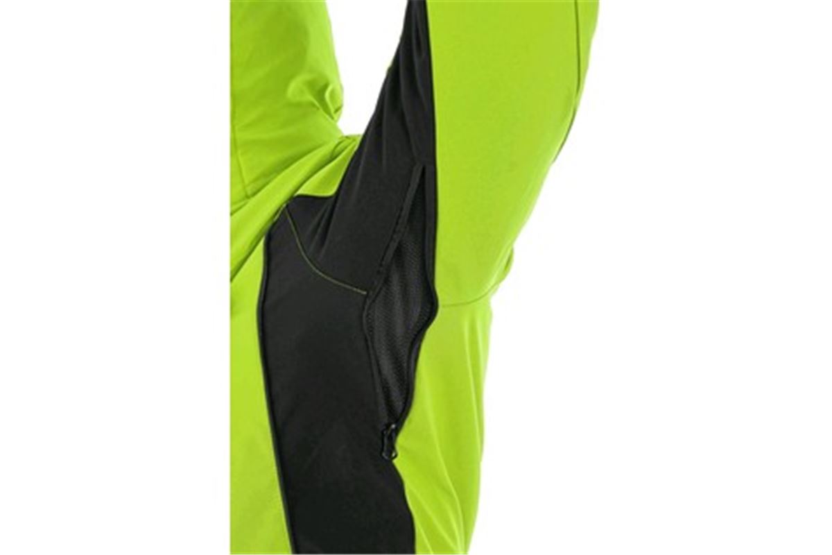 Pánská zateplená softshellová bunda, odolná proti vodě a větru, větrání v podpaží, odepínací kapuce, regulovatelná manžeta na rukávech a pružná manžeta v rukávech, stahování v dolním okraji, černé reflexní výpustky, TPU membrána, odolnost materiálu proti průniku vody 10 000 mm mimo oblast švů, paropropustnost 3 000 g/m2/24 h, podšívka je kombinací materiálů s fleecem, na levém spodním rukávu kapsička na zip, 2 spodní kapsy na zip, vnitřní kapsa.
