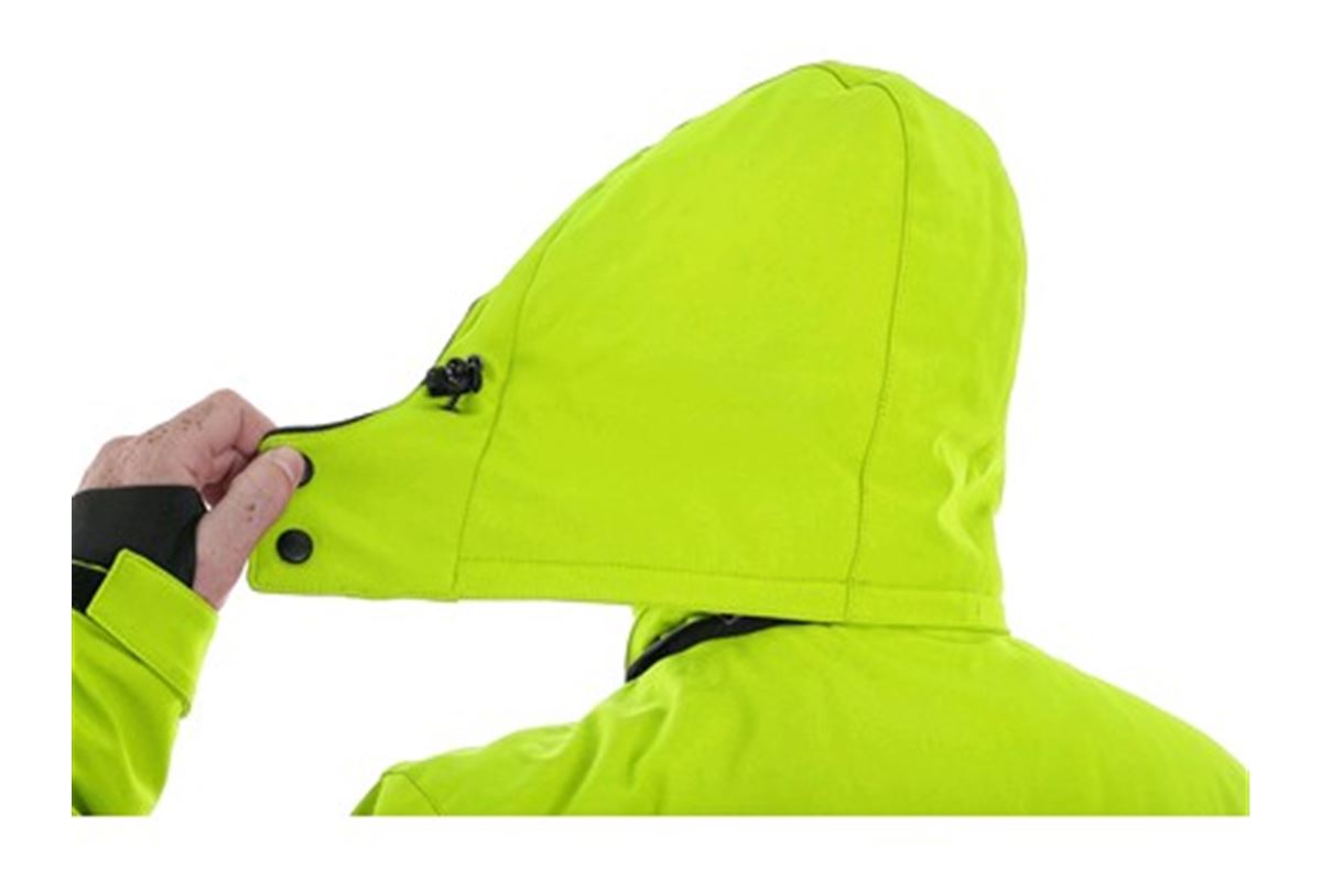 Pánská zateplená softshellová bunda, odolná proti vodě a větru, větrání v podpaží, odepínací kapuce, regulovatelná manžeta na rukávech a pružná manžeta v rukávech, stahování v dolním okraji, černé reflexní výpustky, TPU membrána, odolnost materiálu proti průniku vody 10 000 mm mimo oblast švů, paropropustnost 3 000 g/m2/24 h, podšívka je kombinací materiálů s fleecem, na levém spodním rukávu kapsička na zip, 2 spodní kapsy na zip, vnitřní kapsa.