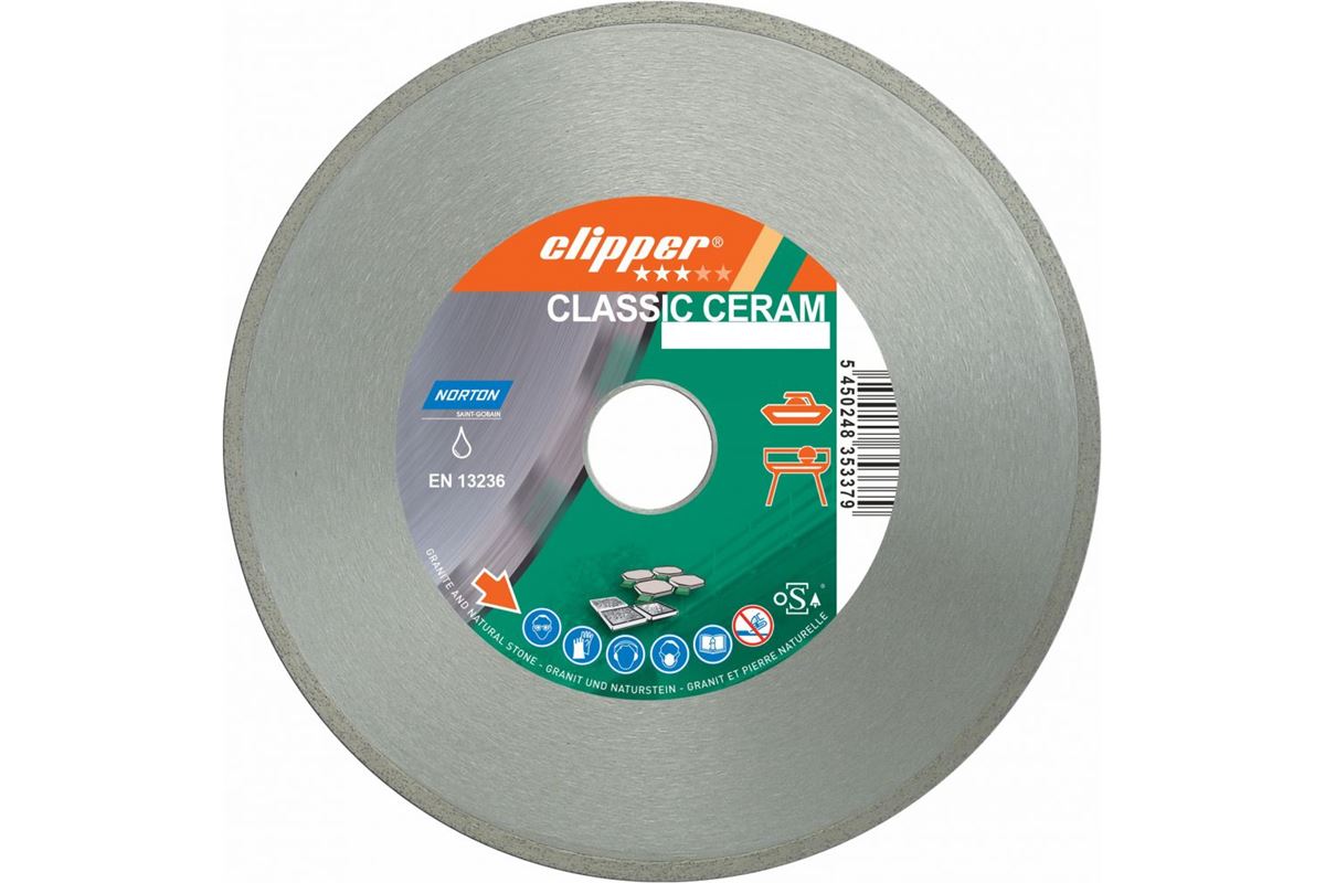 Diamantový kotouč na keramické a kamenné dlažby, žuly, mramoru CLIPPER CLA CERAM 1770 o průměru 180 mm. Určeno pro všechny typy keramických dlaždic, pálené dlaždice, žulu a mramorovou dlažbu.