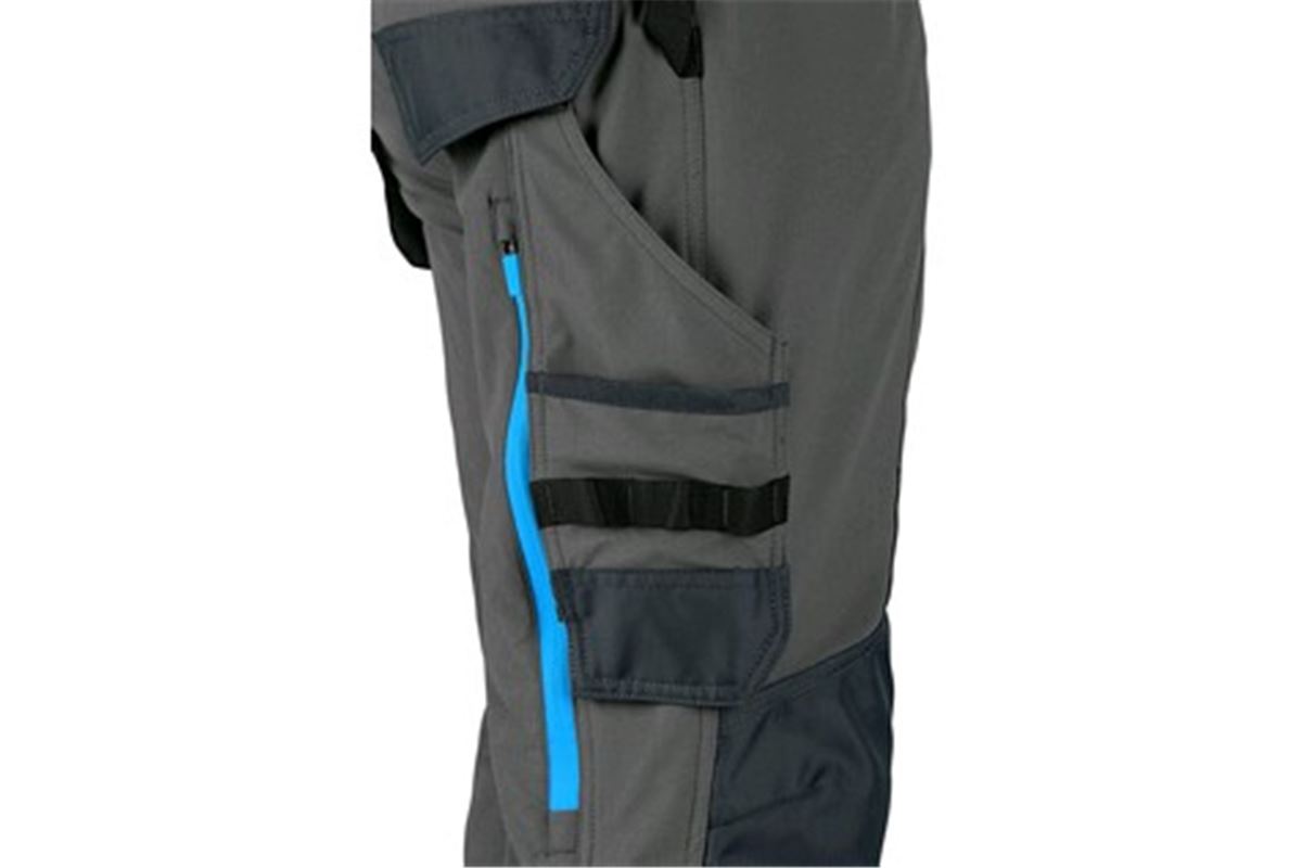 Pánské montérkové kalhoty s kontrastními barevnými a reflexními doplňky. Konstrukce 4-way stretch umožňuje roztahování materiálu ve všech čtyřech směrech a tím i snadný a volný pohyb. Vysoké procento nylonu zaručuje schopnost rychlého schnutí. Vybavení kalhot: flexibilní pas s možností upravení velikosti a poutky na opasek, 2 přední kapsy, 2 odnímatelné kapsy na nářadí vyztuženy materiálem CORDURA, kapsa na zip na stehně, multifunkční boční kapsa, 2 zadní kapsy ve spodní části vyztuženy materiálem CORDURA, zipová ventilace v zadní části stehen, kolena zesílena materiálem CORDURA s možností vložení kolenních výztuh, spodní část nohavic vyztužena materiálem CORDURA.