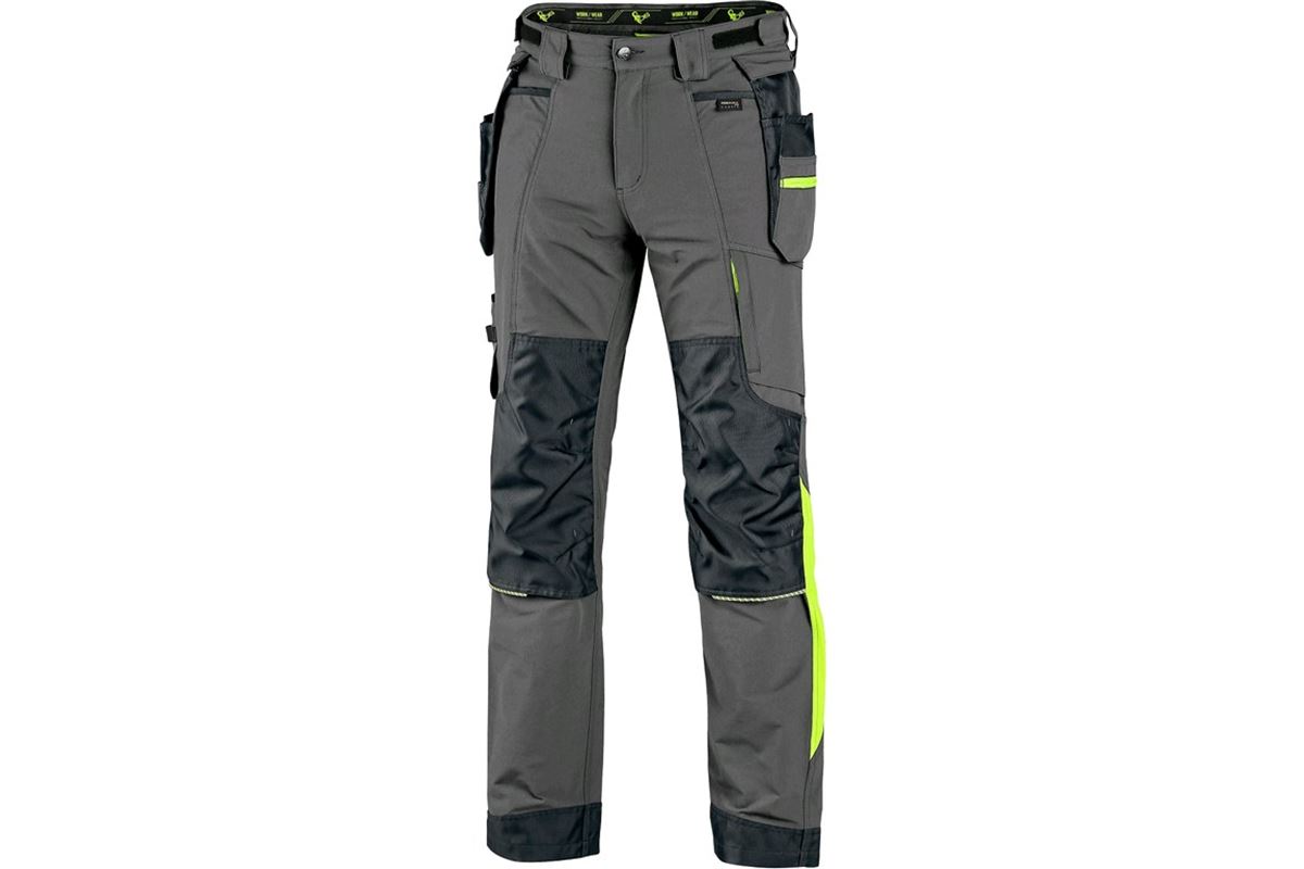 Pánské montérkové kalhoty s kontrastními barevnými a reflexními doplňky. Konstrukce 4-way stretch umožňuje roztahování materiálu ve všech čtyřech směrech a tím i snadný a volný pohyb. Vysoké procento nylonu zaručuje schopnost rychlého schnutí. Vybavení kalhot: flexibilní pas s možností upravení velikosti a poutky na opasek, 2 přední kapsy, 2 odnímatelné kapsy na nářadí vyztuženy materiálem CORDURA, kapsa na zip na stehně, multifunkční boční kapsa, 2 zadní kapsy ve spodní části vyztuženy materiálem CORDURA, zipová ventilace v zadní části stehen, kolena zesílena materiálem CORDURA s možností vložení kolenních výztuh, spodní část nohavic vyztužena materiálem CORDURA.