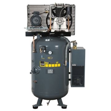Dílenský kompresor Schneider stojatý UniMaster UNM STS 1000-10-500 XDK klínovým řemenem poháněný pístový kompresor se 2 válci a dvoustupňovou kompresí na tlak 10 resp. 15 bar zvyšuje výkon a zajišťuje vysoký stupeň účinnosti.