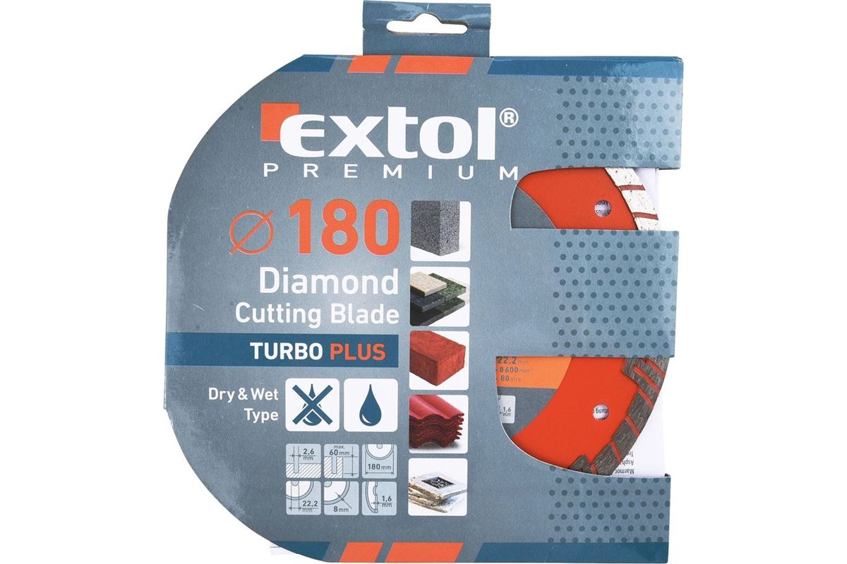 - Kotouč diamantový řezný TURBO PLUS - suché i mokré řezání, O 180x22,2x2,8mm (8803034) EXTOL PREMIUM