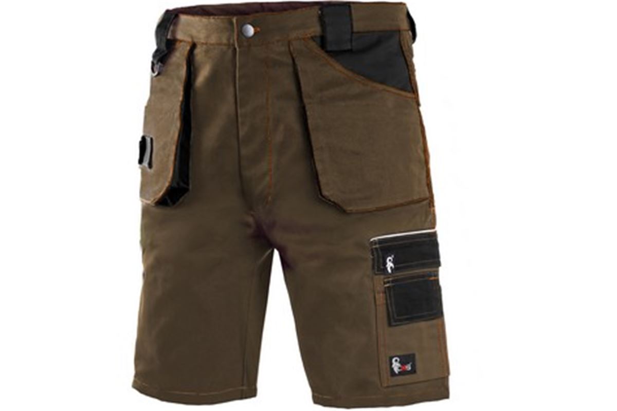 Pánské kraťasy do pasu, s poutky na opasek, klínové přední kapsy a našité kapsy na zip s poutky na nářadí.