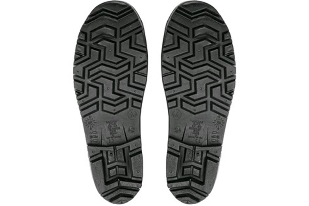 Bezpečnostní holínka s ocelovou špicí. Absorbce energie v patní části. Protiskluzová, antistatická, olejivzdorná podešev.