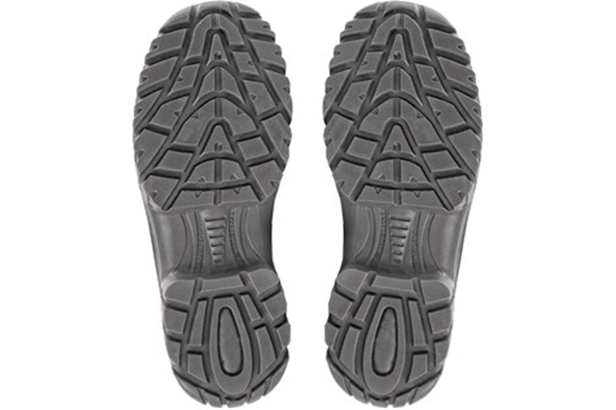 • Bezpečnostní sandál, kožený, perforovaný s plastovou špicí a kevlarovou stélkou, reflexní doplňky. Materiál: svršek z 1,6 - 1,8 mm štípenkové nubukové kůže (z jednoho dílu), vnější TPU ochrana paty, bez kovových součástí, podšívka z prodyšné oděru odolné textilie, PU-PU olejivzdorná, antistatická, protiskluzová podešev.