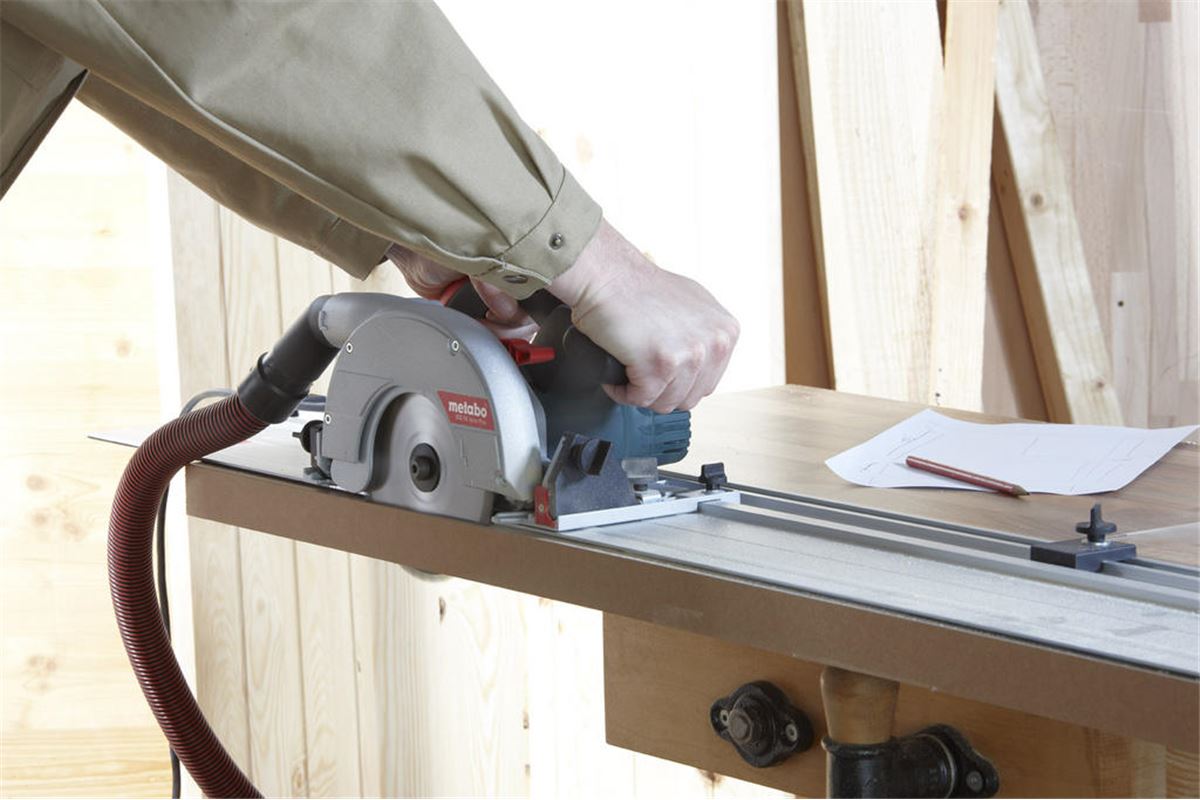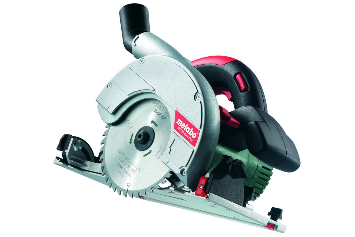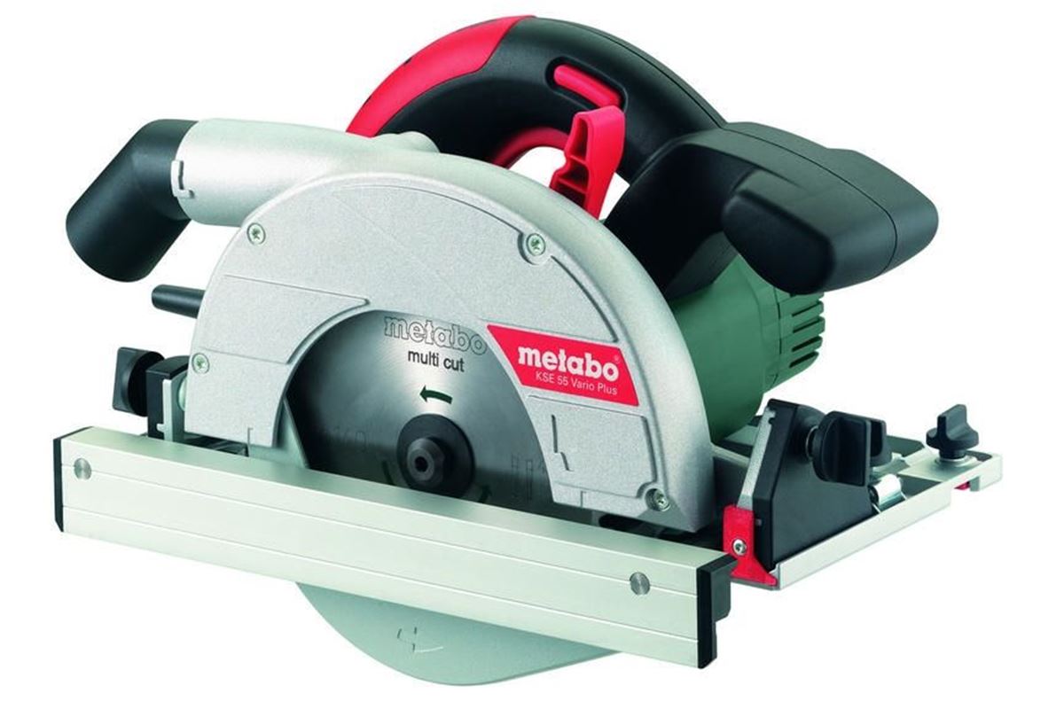 Vysoce spolehlivá okružní pila Metabo KSE 55 Vario Plus pro čistý a precizní řez nejrůznějších materiálů. Příkon motoru 1200 W, 5200 ot./min., nastavitelný úhel řezu 0-45°, možnost řezu do hloubky až 55 mm. Včetně vodící lišty.