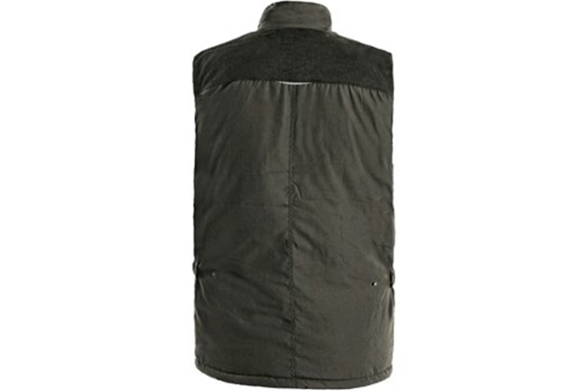Zateplená vesta, ramena a límec pošitý manšestrem, pružné stažení průramku, možnost stažení vesty v pase, 14 kapes - z toho 3 kapsy uvnitř vesty.