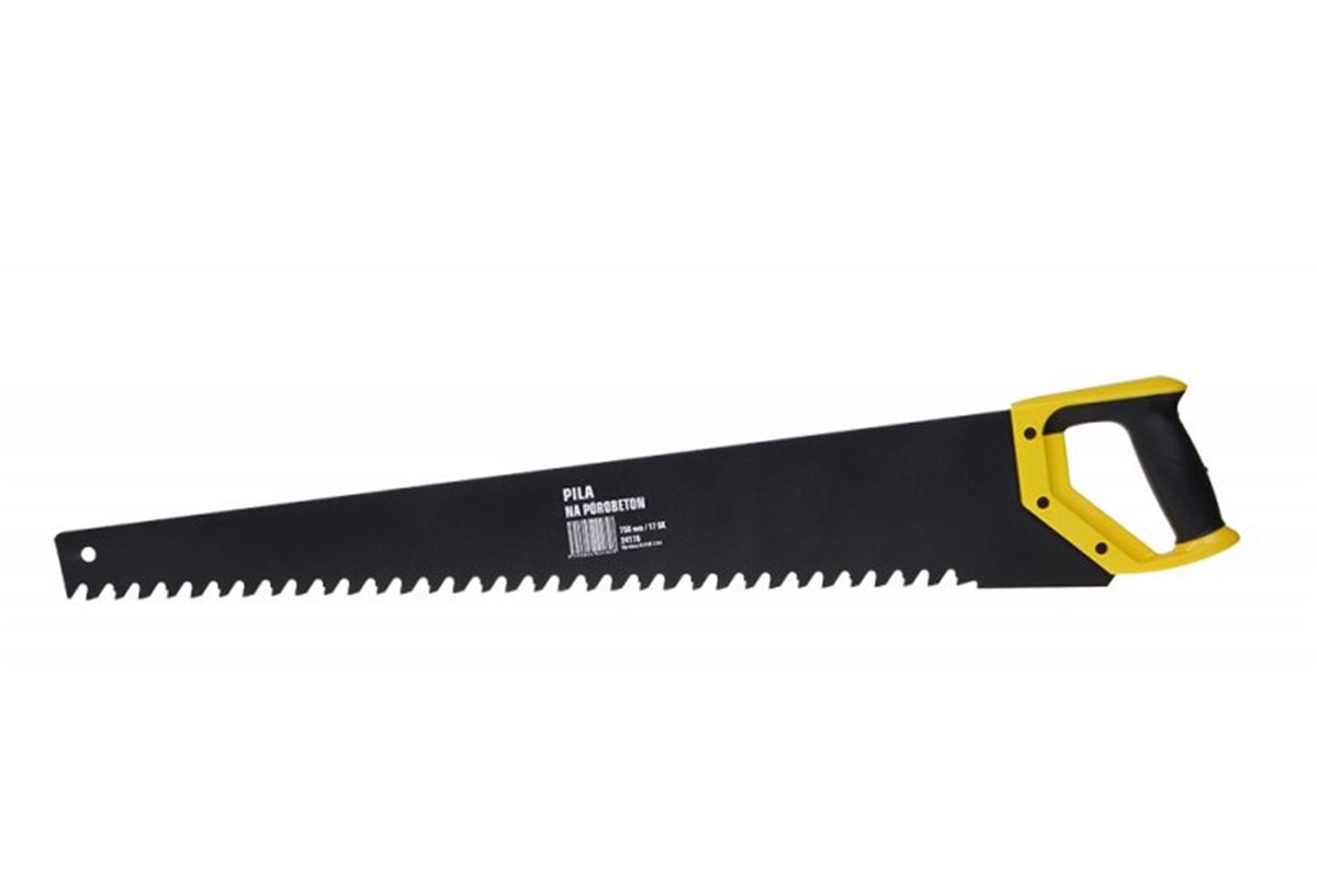 Ergonomická ABS rukojet s měkčenou TPR gumou Tuhý ocelový list s břitovými destičky ze slinutých karbidů zaručující dlouhodobý řezný výkon Počet osazených zubů: 17 Pracovní délka: 750mm Použití: profesionální pila pro řezání pórobetonových bloků.
