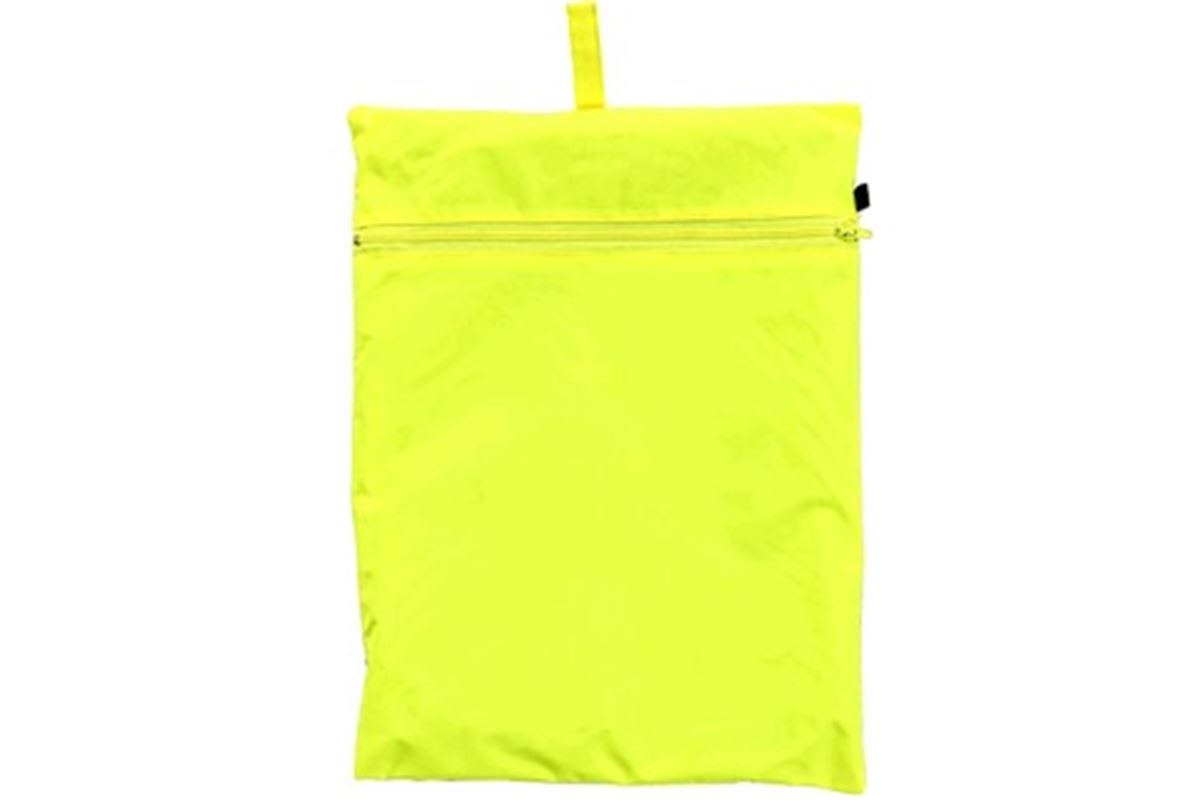 • Výstražný plášť s reflexními pruhy, nepromokavý, lepené švy, odepínací kapuce v límci, zapínání na zip krytý légou, raglánové rukávy v manžetě do gumy, dvě spodní kapsy s patkou, větrání na zádech. Plášť je složen v praktickém balení na zip. Délka pláště 120 cm.