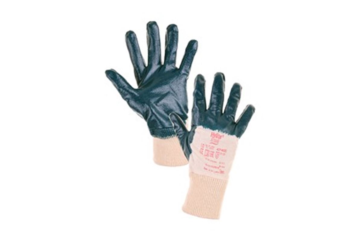 Rukavice s dlaněmi a prsty povrstvenými nitrilem, úpletová manžeta. Délka rukavice: 27 cm. Doporučené použití: dodávky plynu a elektřiny, příjem a odbavování zboží, lisování. Odvětví: automobilový, strojní a stavební průmysl, logistika.