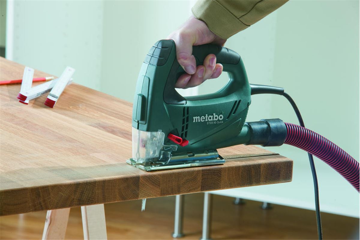 Kvalitní přímočará pila Metabo STEB 80 Quick o příkonu 690 W, možností řezání dřeva o max. síle 80 mm. Pila nabízí funkci pro jednoduchou výměnu pilového plátku, funkci pro ofukování místa řezu. Celková hmotnost 2 kg. Možnost připojení externího odsávání.