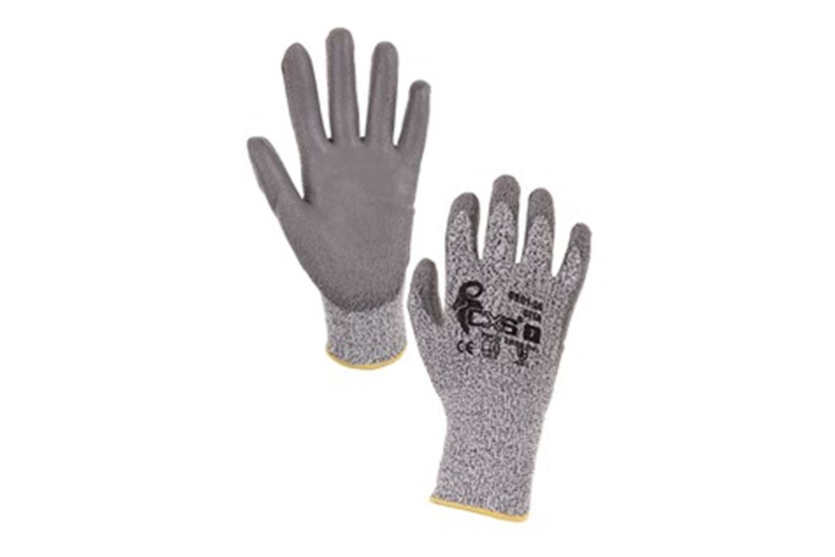 Protipořezové rukavice s dlaněmi a prsty máčenými v polyuretanu. Odolnost proti řezu 3. Doporučené použití: manipulace s ostrými předměty. Odvětví: automobil. průmysl, logistika a skladování.