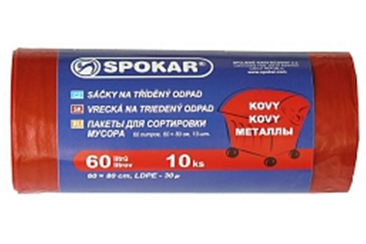 - Sáčky na tříděný odpad 60L - 10 ks, červené - na kovy