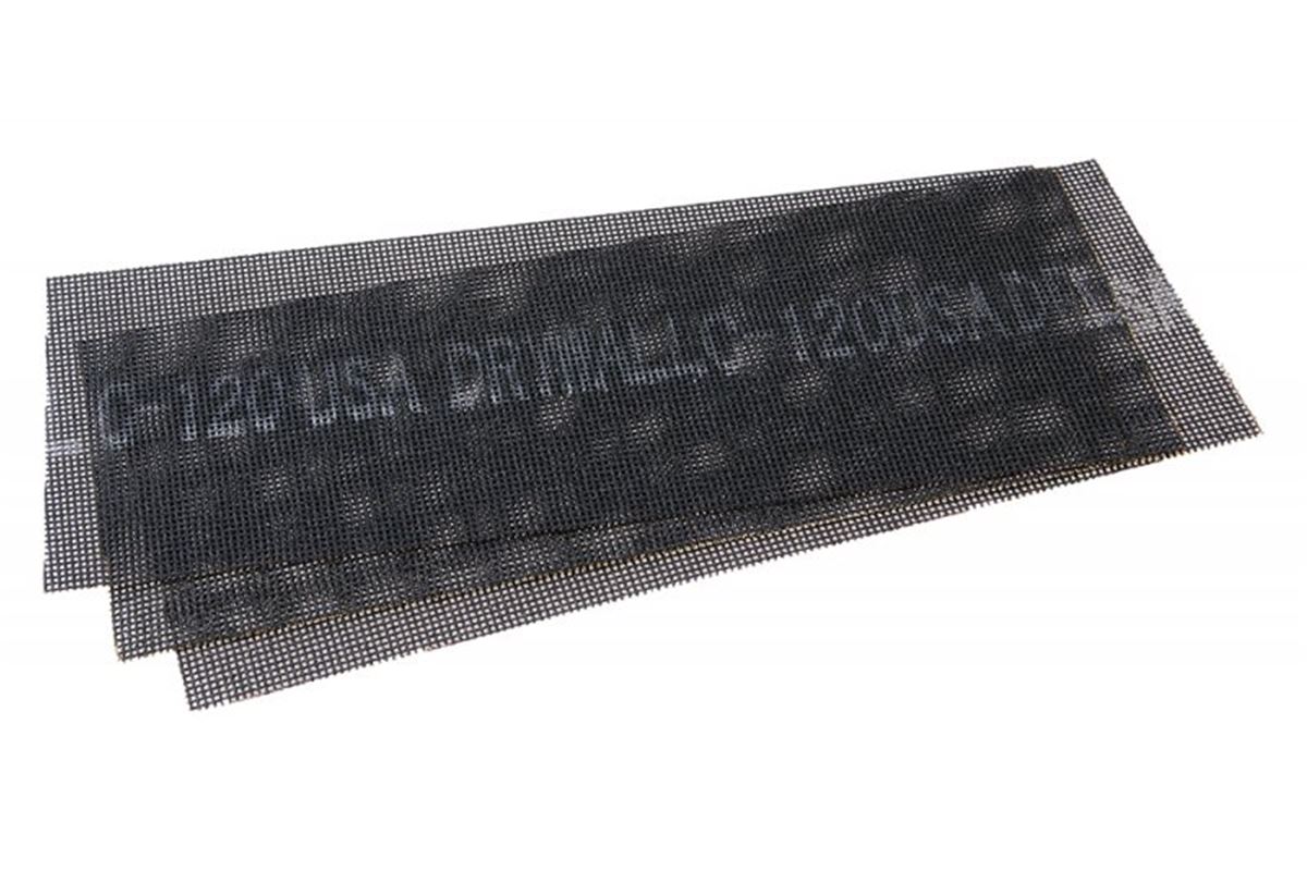 • Brusná mřížka 115 x 290 mm, zrnitost 120, 3ks/sada s eurootvorem , nosná tkanina ze skelných vláken, pryskyřicí přilepena brousicí zrna karbidu křemíku nanšena antistaticky, vhodné pro broušení sadrokartonových spárovacích hmot, i dalších materiálů, výhoda mřížkové struktury proti běžným brousicím papírům spočívá v tom, že se nezanáší odbroušeným materiálem.