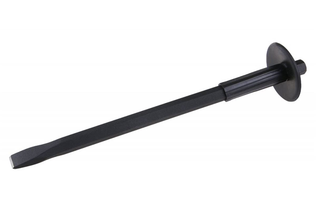 Sekáč (majzlík, majzl) plochý s plastovou ochranou. Vhodný pro práci s kamenem, cihlou, stavebním materiálem.