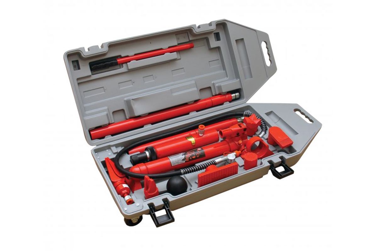 • Hydraulické zařízení pro opravování karoserií vozidel. Skládá se z hydraulického rozpínacího válce a 14ti dílů příslušenství. Široký rozsah využití při opravách karoserií osobních, dodávkových a nákladních vozidel především v místech, kde není možnost napojení na zdroje energie. Zařízení lze využít pro rozpínání, stlačování, zvedání a natahování ve vertikálních i horizontálních směrech. Jednoduché přenášení v plastovém kufru. Rozpínací síla 10t, rozsáhlé příslušenství. Kvalitní hydraulika s dlouhou životností. Zdvih pístu 135 mm.