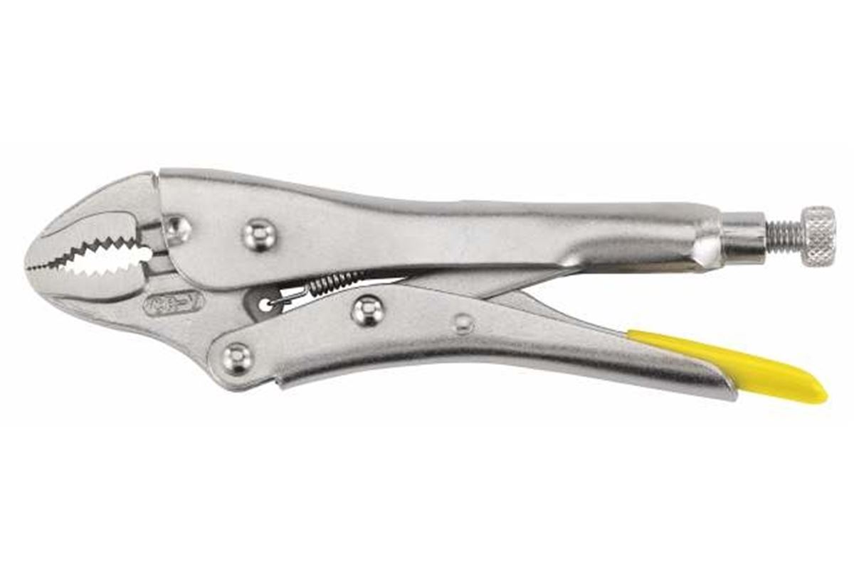 Upínací kleště s oblými čelistmi o délce 177 mm (7"), které mají kované a frézované čelisti zajišťující vysokou pevnost a odolnost. Jejich nastavení se provádí vroubkovaným kolečkem na konci horní rukojeti, uvolní se stiskem žluté páčky.