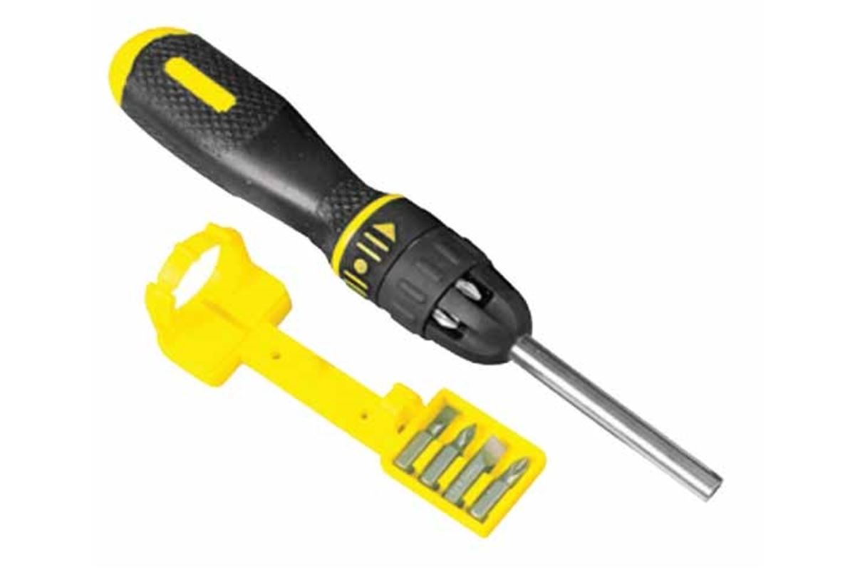 Vícebitový ráčnový šroubovák + 10 bitů má přepínací ráčnový mechanismus s možností zablokování. Rukojeť s vroubkováním pro pohodlné držení. Úložný systém s pružinovým mechanismem pro snadný přístup.