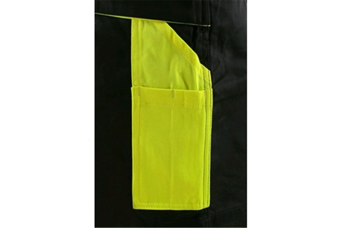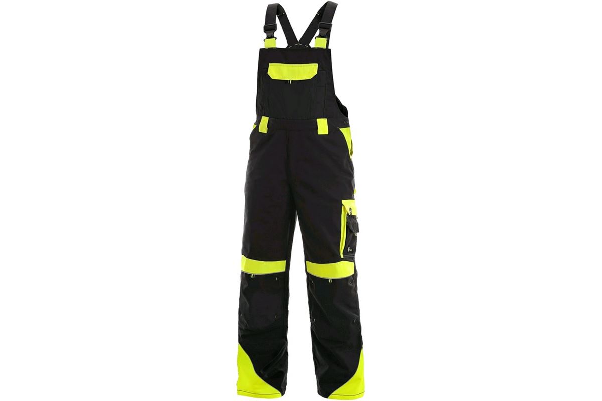 kolenních výztuh, dvě zadní kapsy s klopami, šle s gumou vzadu, reflexní