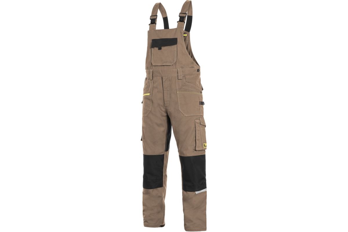 • Pánské montérkové kalhoty s náprsenkou, strečová tkanina umožňující volný pohyb, náprsní kapsa s klopou, pas s poutky na opasek, přední kapsy s kapsou na zip, multifunkční kapsy na obou stranách, kolena zesílena 600D polyesterem s možností vložení kolenních výztuh, dvě zadní kapsy - jedna s klopou, zadní spodní lem nohavice vyztužen 600D polyesterem, šle s gumou vzadu, reflexní doplňky. Doporučené použití: strojírenství, stavebnictví, lehký průmysl, automobilový průmysl, logistika, skladová manipulace, spedice, autoservisy, údržba, montáže, zemědělství, zahrada, hobby.